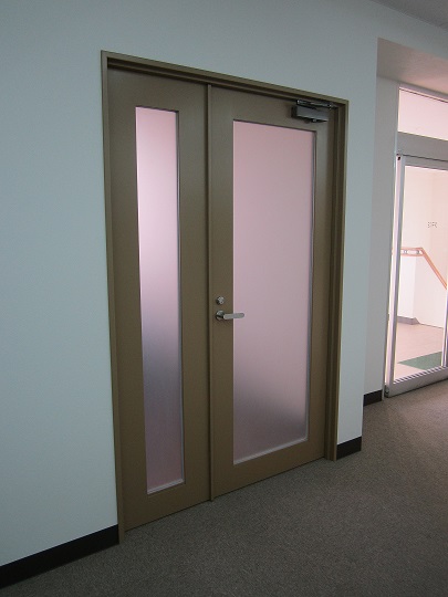 オフィス出入り口に施工したガラス入り親子スチールドア